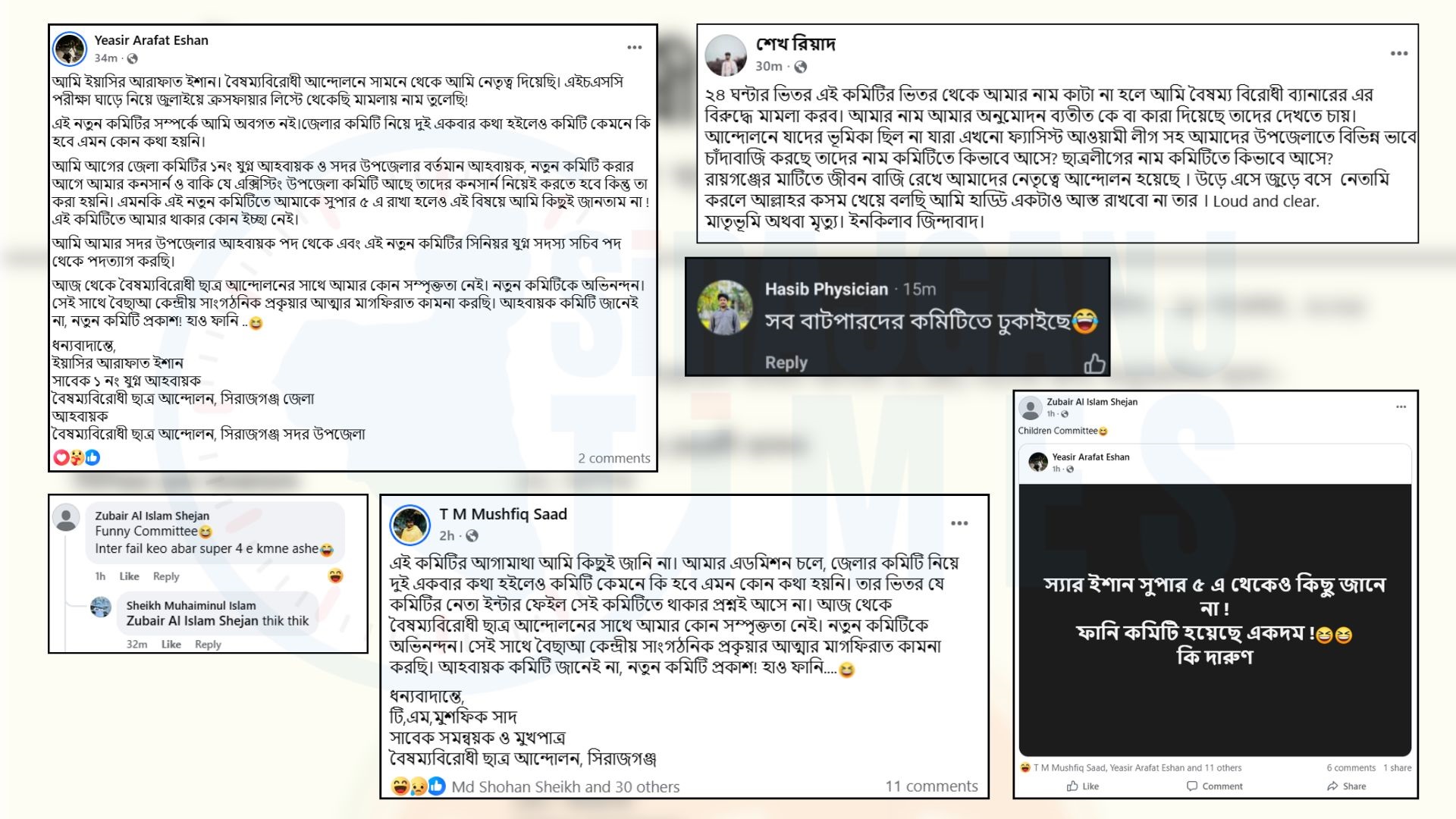 বৈষম্যবিরোধী ছাত্র আন্দোলনের সিরাজগঞ্জ জেলা শাখায় সদ্য ঘোষিত আহ্বায়ক কমিটিকে কেন্দ্র করে তীব্র অসন্তোষ দেখা দিয়েছে নেতাকর্মীদের মাঝে। নতুন কমিটি অনুমোদনের বিষয়ে অবগত না থাকার...