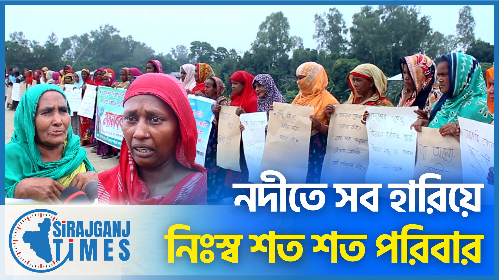 হাঁটপাচিলে নদীভাঙনে সব হারিয়ে বাসস্থানের দাবিতে মানববন্ধন